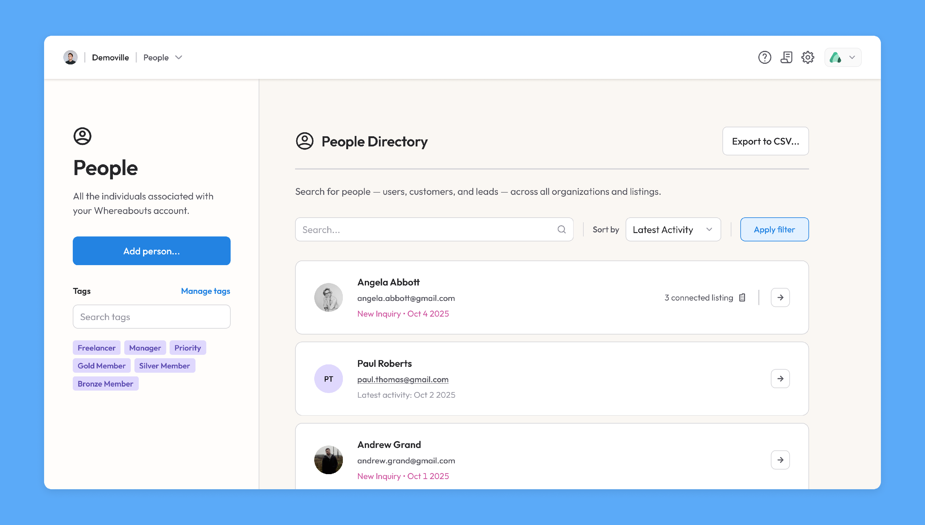 customertag applied. - Lead: If you have connected a form on your website to the People app, anyone who makes a submission will be captured in your People app and will have the